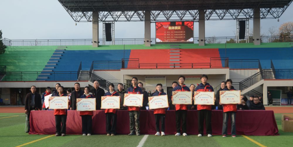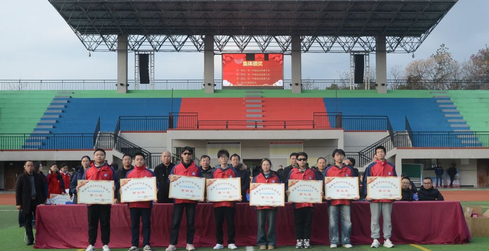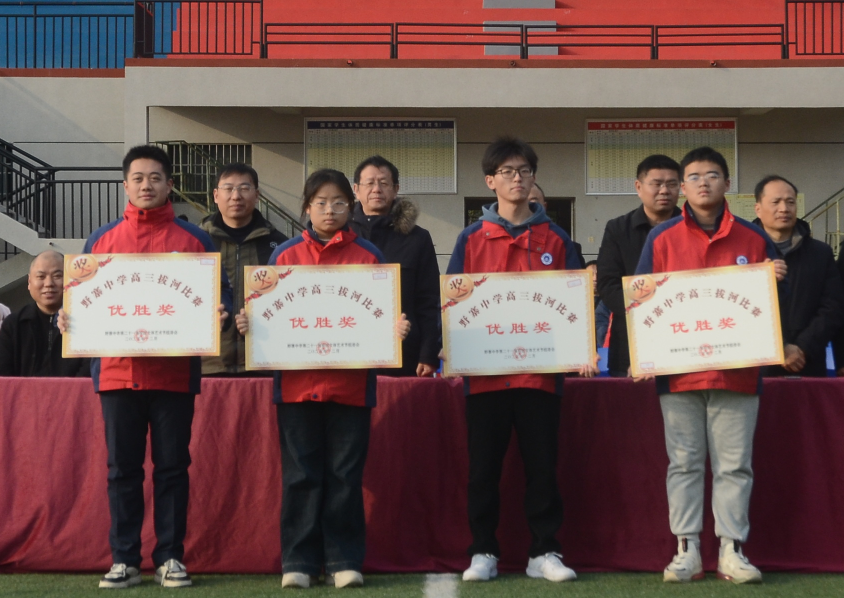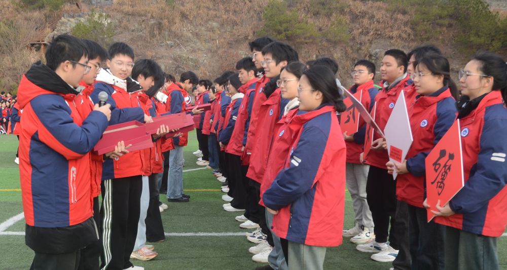 致辞毕,集体颁奖环节有序开展。校领导依次为各年级运动会前八名班级、高三拔河比赛前四名班级颁发荣誉证书,沉甸甸的奖状凝结着拼搏汗水,阵阵掌声见证着荣耀时刻,既彰显了学子们的竞技风采,更激励着全体师生永葆奋进之志。