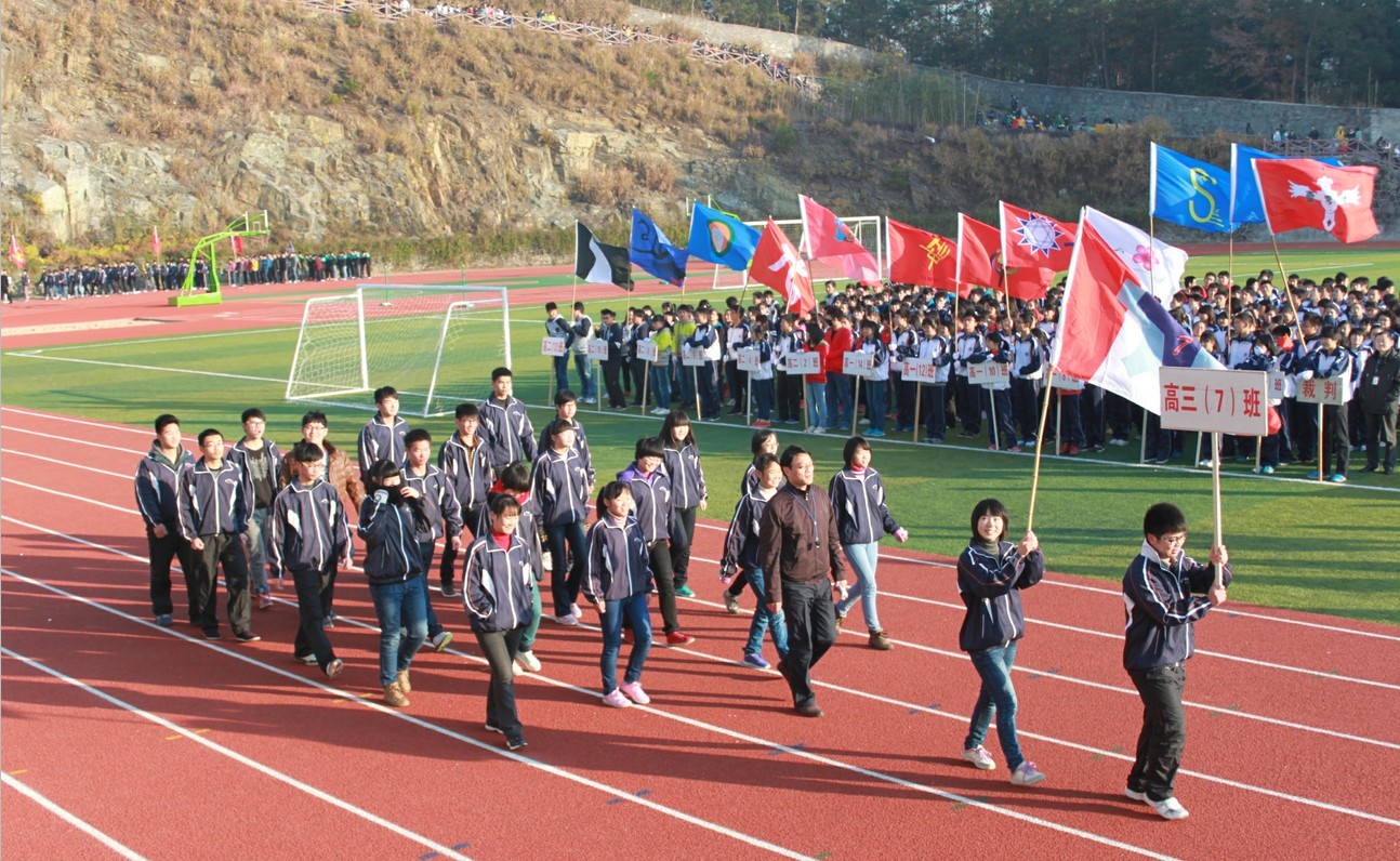 在一年一度的“青春飞扬”运动会入场式上,各班级运动员、裁判员在校旗和班旗的引领下,以整齐的方阵接收检阅,数百名同学和着优美的旋律,迈动青春的步伐,表演了精彩的校园华尔兹集体舞蹈和广播操,赢得了师生们热烈的掌声。