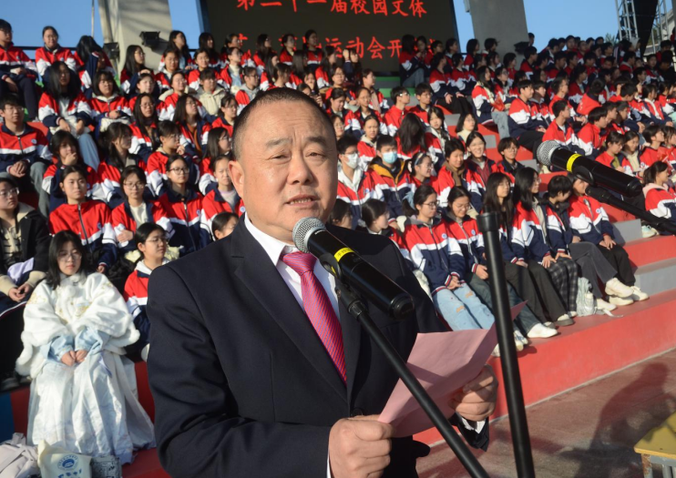 程林校长在致辞中,代表学校向精心筹备赛事的师生员工致以诚挚感谢,对参赛运动员、裁判员及全体师生寄予 “以赛砺志、以体育德” 的殷切期望,并预祝赛事圆满成功。随后,朱太平书记宣布:野寨中学第 21 届校园文体艺术节及 2025 年校园田径运动会正式开幕。