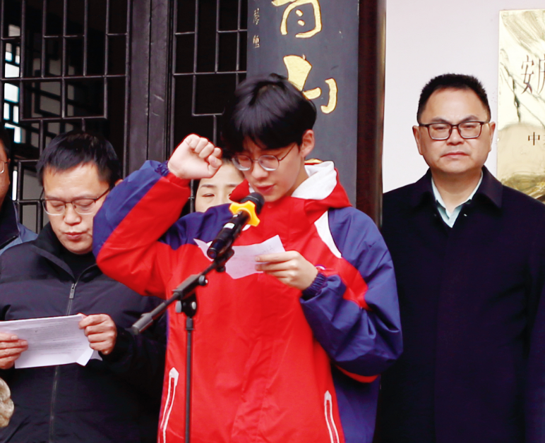 随后,安庆市委教体工委委员、市教育体育局副局长陈党生发表讲话。他对我校此次国家公祭日系列纪念活动的精心组织与扎实开展给予高度评价,认为活动主题鲜明、形式庄重,有效引导了师生铭记历史、砥砺初心。他强调,学校作为爱国主义教育的主阵地,要持续将历史教育、爱国教育融入教育教学全过程,引导青少年学生树立正确的历史观、民族观、国家观,扣好人生第一粒扣子;希望全体师生以此次活动为契机,把缅怀之情转化为奋进之力,为实现中华民族伟大复兴的中国梦贡献智慧与力量。