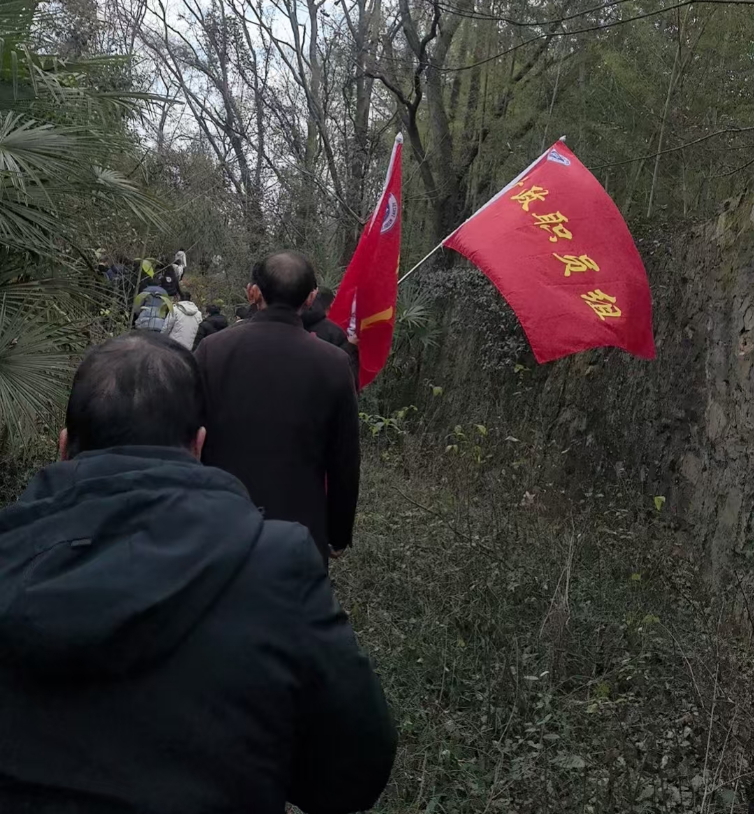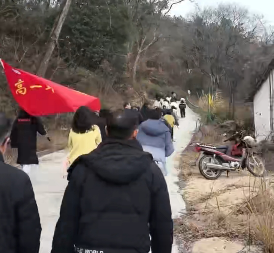 队伍按照高三年级组、高二年级组、高一年级组、行职组的顺序依次前行。从学校运动场出发,经钟鼓楼、后山步道、若彤苑;沿校园外围墙、水泥大道、白鹤宫遗址指示牌2、鹿鸣山庄、桂香园,最终经东校区回到学校大门。本次行程安排别具匠心,既贯穿校园内外重要地标,又融入了自然与人文景观:既能曲径通幽饱览沿途风景,又能迈步康庄大道,触摸校园发展文化脉络,让教职工们在行走之间享受新年到来的轻松惬意。