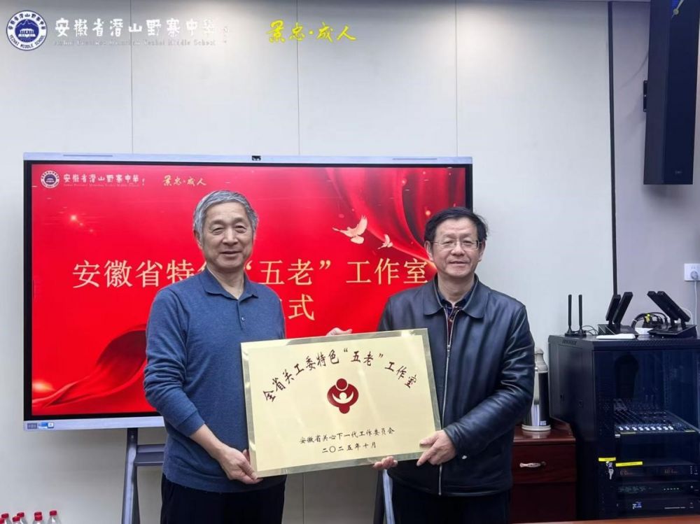 仪式上,安庆市关工委李跃云常务副主任宣读了省关工委认定文件,正式确认野寨中学关工委 “五老”工作室获评省级特色称号。我校关工委副主任徐富贵作表态发言,承诺将持续深耕关工委工作,不负荣誉与期望。