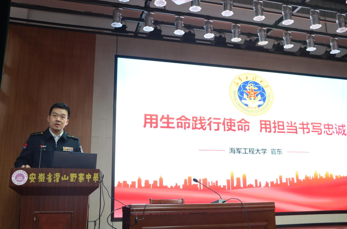 3月21日,安庆市军校招生宣传暨国防教育专题巡讲活动在我校成功举办。本次活动由海军参谋部军事教育局指导,海军工程大学、安庆军分区、安庆市教育体育局联合主办,潜山市教育局、野寨中学承办,安庆军分区、安庆市教育局、潜山市有关部门领导,各军队院校招生宣传人员,安庆市优质中学师生及家长代表参加活动,旨在深化国防教育进校园工作,厚植青少年家国情怀,搭建军队院校与地方中学的沟通桥梁,为强军兴军事业培育后备人才。