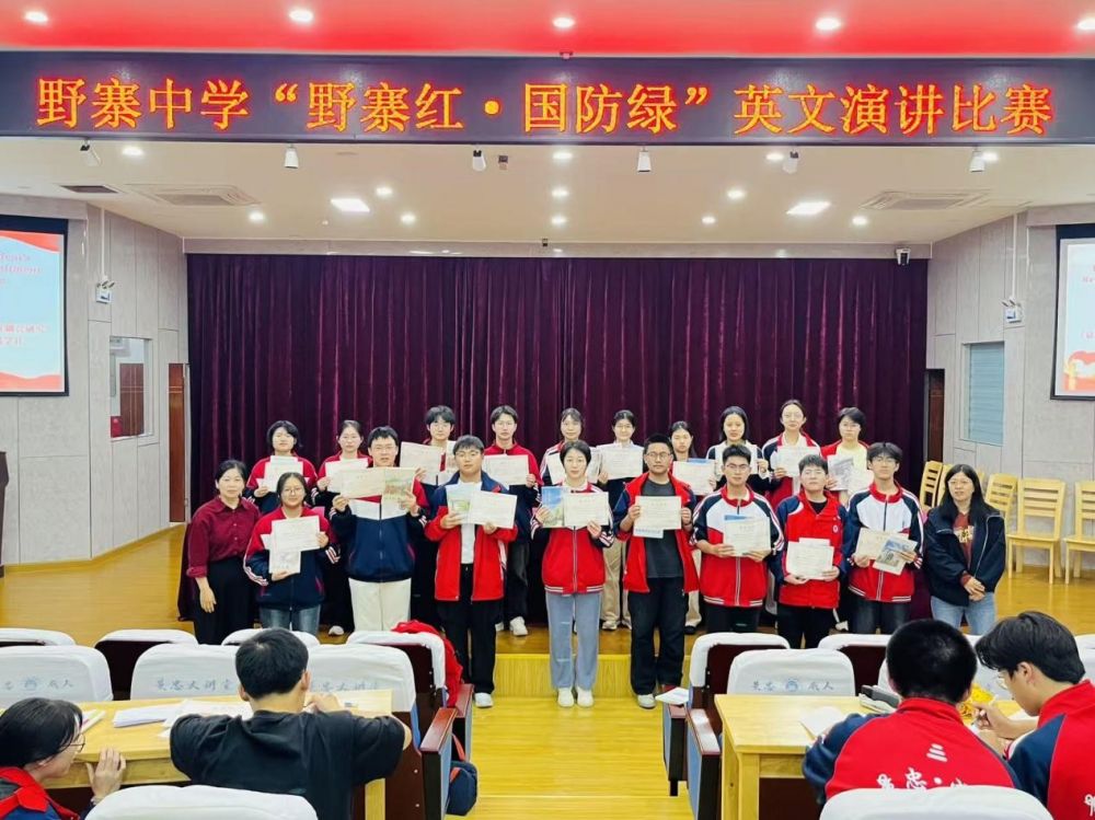 此次赛事不仅为同学们搭建了高水平的英语实践与展示平台,更推动国防教育与英语学科教学深度融合,生动彰显了野寨中学“红绿交融”的育人特色,激励广大青年学子以语言为桥、以英语为媒,主动讲好中国国防故事,勇担时代使命。(撰稿、一审:杨双艳;二审:陈义华;三审:王宝堂)