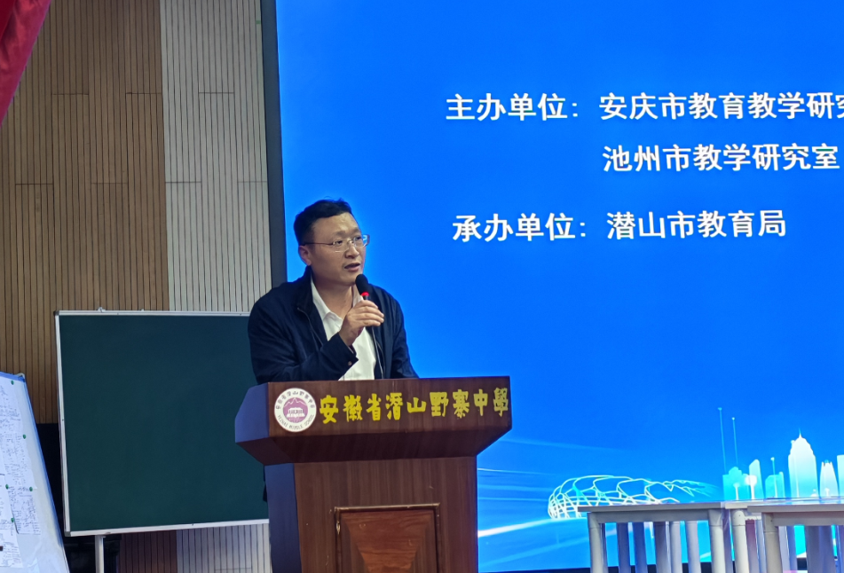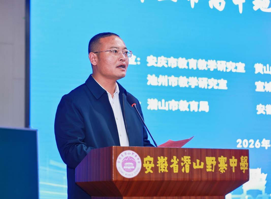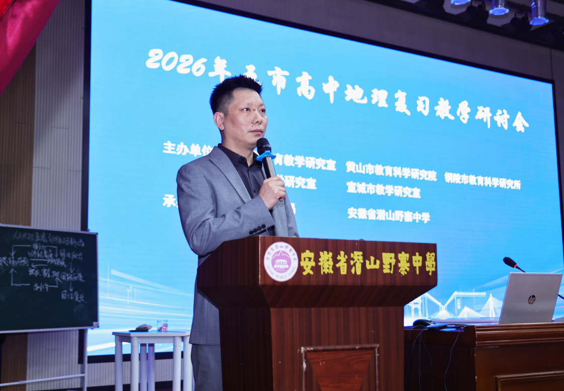 最后,安庆市教研室副主任王艮胜讲话。他强调,本次研讨会紧扣2026届高三地理二轮复习核心,聚焦新课标与地理核心素养落地,是五市推进跨区域协作教研、整合优质资源的关键举措。他希望全体参会教师认真学习、深入交流,把研讨成果转化为教学实效,优化复习策略、精准对接高考,以高质量教研护航2026年高考备考,携手推动五市高中地理教育再上新台阶。