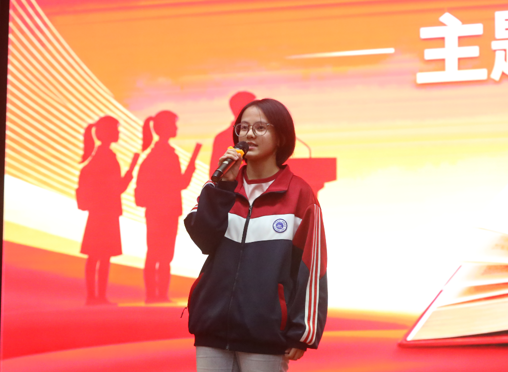 比赛现场气氛热烈,高一年级各班学生踊跃参与,共32名选手登台竞技。在近三个小时的激烈角逐中,选手们紧扣“学习新思想 做好接班人”这一鲜明主题,或慷慨激昂,或深情款款,以真挚的语言和得体的仪态,奉献了一场充满激情与思想深度的青春盛会。他们的精彩表现赢得了现场评委和观众的阵阵掌声。